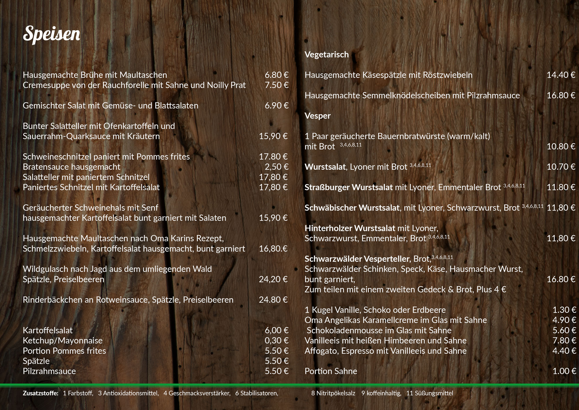 Wir sind eine Vesperstube in der schönen Natur des Mittelschwarzwaldes und bieten deutsche, frische Küche mit saisonalen Gerichten an.